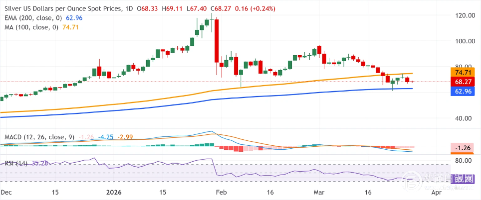 若能持续守住67.80美元水平,就能有效遏制当前的回调走势;而若银价持续跌破100日移动均线,则会进一步强化对较低支撑位的关注。