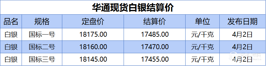 上海华通现货白银结算价:一号国标、二号国标、三号国标如下:
